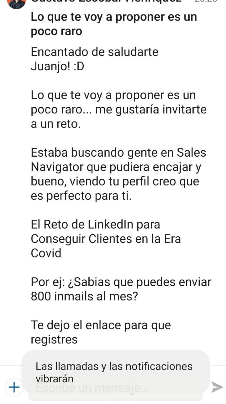 Era de un inmail de Gus , a través de una campaña en Linkedin.